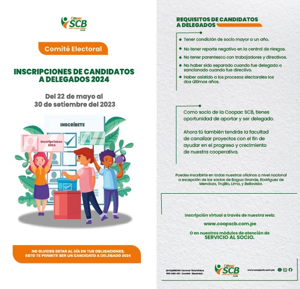 Estimado socio queremos invitarte a participar de las INSCRIPCIONES DE DELEGADOS 2024 a través de nuestro formulario en línea o puedes descargarlo y presentarlo en nuestras oficinas.